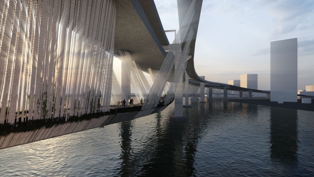 高架の持つつなぐ力を拡張し、その下を人々の場として開放する。