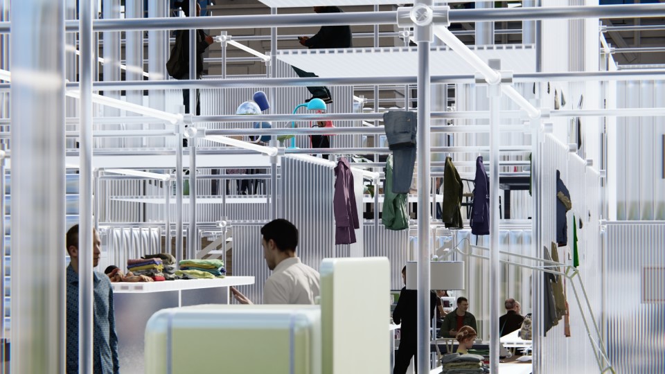 パリのセーヌ川沿いに、新たな公共空間を立ち上げる試みである。ここでは、川に浮かぶラグジュアリーホテルで過ごす人々と、住まいを持たずテントで暮らす人々が、隣り合わせに日常を営んでいた。資本主義がもたらしたこうした風景に対し、ささやかで静かな抵抗として、売買ではなく人から人へと受け渡していく仕組みを考えた。誰かが持ち寄ったものが次の人へと渡り、さらに別の手へと引き継がれていく。空間もまた、自らの手で組み立てていく。音楽やアートなどの小さな活動がそれぞれのタイミングで重なり、通りすがる人々の間にひとときの共有の場が立ち上がっていく。