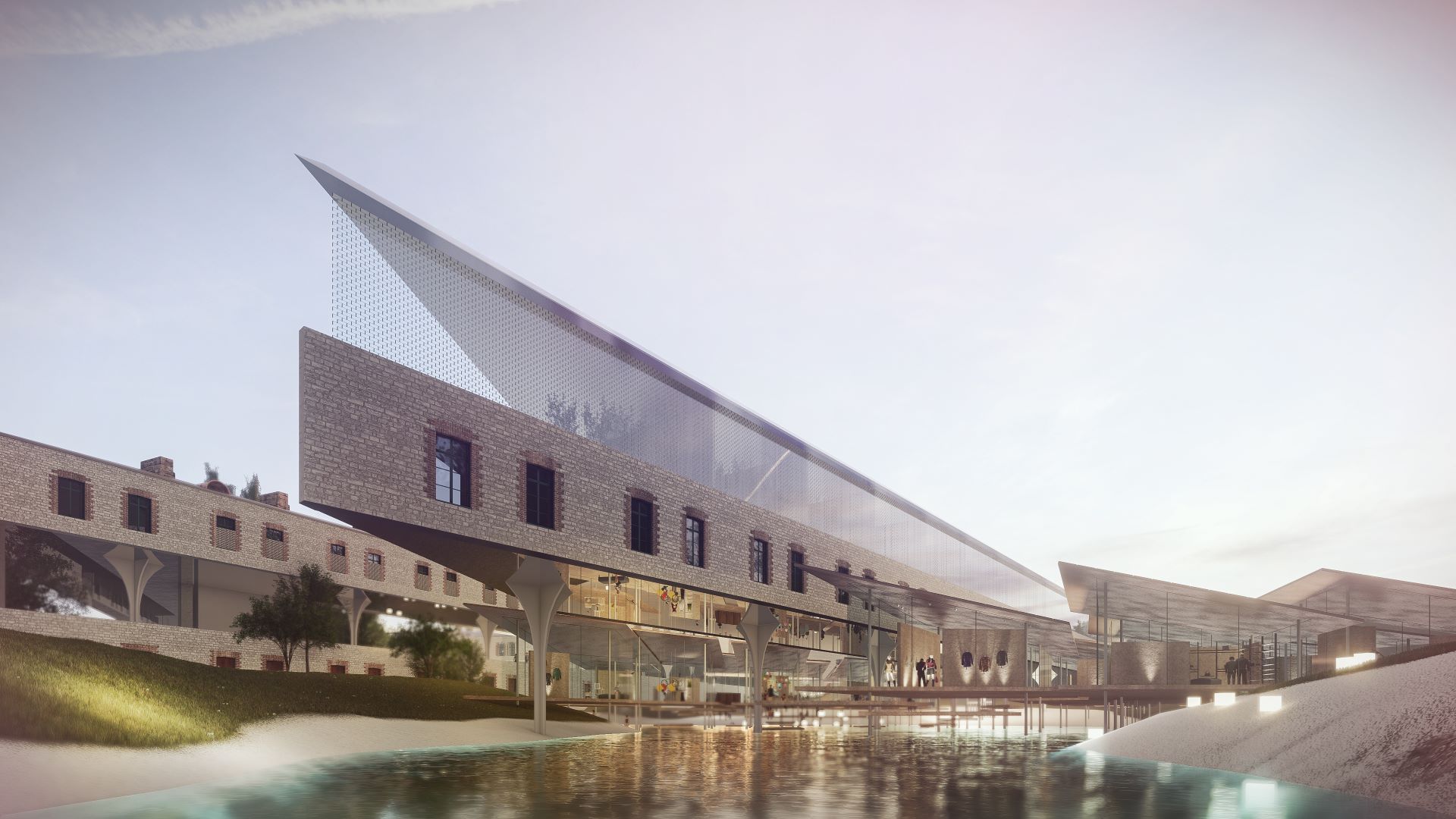 An attempt to convert a historical building in Estonia, once used as a detention facility during the communist era, into public space. From the three-storey building with a triangular plan that encloses a courtyard, the central second-floor portion was cut out and externalized to insert public space. Through this operation, light and wind are brought into a structure that had long been closed and burdened with heavy memories, and by reconnecting the courtyard to the city, the project aims to create a place of rest open to citizens.